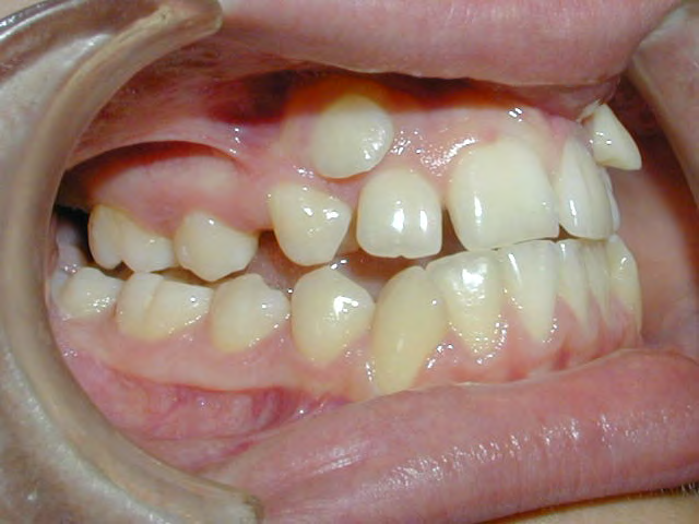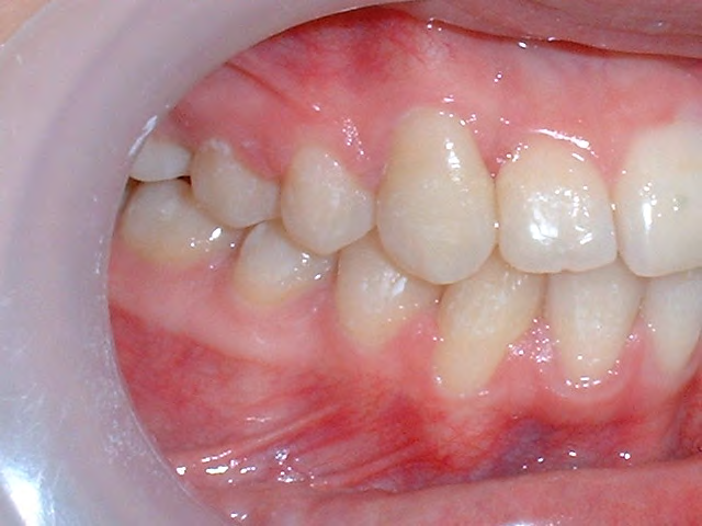 The patient below had severe crowding of both upper canines and the lower right 5. The upper 4’s and 2’s were actually in contact.